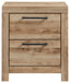 Inspired by natural beauty, refined to perfection. This nightstand brings cozy outdoor vibes to your bedroom with its warm and inviting golden rustic finish. Antiqued gunmetal handles adorn the two drawers on its framed front for an industrial touch, while USB charging adds a high-tech element to the simple, streamlined design.