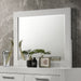 Complete your dresser with this elegant mirror, designed to enhance the modern aesthetic of your bedroom. The high gloss finish and 3-dimensional diamond tile emboss perfectly complement the dresser, creating a cohesive look. This mirror features a sturdy frame crafted from solid materials, ensuring both style and durability. Its generous size offers ample reflection, making your space feel larger and brighter. This mirror is the perfect finishing touch to elevate your bedroom decor.