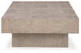 This striking coffee table looks equally at home in traditional or modern settings. A textural light gray finish offers a casual modern look, while the double plinth base exudes a classically contemporary sensibility. This timeless design adds a transitional touch that's sure to serve you well.