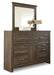 Get the look of posh barn wood without setting foot in a salvage yard. Replicated rough-sawn oak of this dresser and mirror set has a vintage finish that is reminiscent of a timeworn family heirloom. Warm, rustic and naturally beautiful, it’s just got that ageless appeal. Sleek, mod pulls in a pewter tone are a snappy finishing touch.