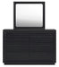 Details B768B4: Includes headboard, footboard and rails, Made with pine solids, veneers and engineered wood substrate, Textured black wood stain with waxy topcoat, Extra wide rails for a bench-like wrap around, Foundation/box spring required, sold separately, Mattress available, sold separately, Assembly required, B768B1: Includes dresser and mirror, Made with pine solids, veneers and engineered wood substrate, Textured black wood stain with waxy topcoat, Hardware-less design, 6 drawers with fully finished interiors, dovetail construction and ball-bearing side glides (top drawers felt lined), Mirror attaches to back of dresser, B768-92: Made with pine solids, veneers and engineered wood substrate, Textured black wood stain with waxy topcoat, Hardware-less design, 2 drawers with fully finished interiors, dovetail construction and ball-bearing side glides, 110V power supply with dual USB charging ports, Power cord included; UL Listed,