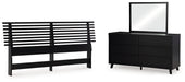 Details B1013-158: Made with engineered wood (MDF/particleboard/plywood) and decorative laminate for the right balance of affordability and durability, Matte black finish with subtle replicated wood grain, Decorative laminate replicates natural or man-made material surfaces with consistent color, pattern and texture, ¼" bolts (not included) are needed to attach headboard to your existing bed frame, Minor assembly required, B1013B11: Includes dresser and mirror, Made with engineered wood (MDF/particleboard/plywood) and decorative laminate for the right balance of affordability and durability, Matte black finish with subtle replicated wood grain, Decorative laminate replicates natural or man-made material surfaces with consistent color, pattern and texture, 6 smooth-gliding drawers, Drawer interiors are lined with a faux linen laminate for a clean, finished look, Integrated drawer pulls, Framed front and pilasters, Mirror attaches to back of dresser; can also be mounted on wall horizontally or vertically, Safety is a top priority, clothing storage units are designed to meet the most current standard for stability, ASTM F 2057 (ASTM International), Drawers extend out to accommodate maximum access to drawer interior while maintaining safety, Minor assembly required,