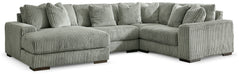 Details Includes 4 pieces: left-arm facing corner chair, wedge, armless chair and right-arm facing corner chaise, "Left-arm" and "right-arm" describe the position of the arm when you face the piece, Corner-blocked frame, Reversible cushions, High-resiliency foam cushions wrapped in poly fiber, Throw pillows included, Pillows with feather-fiber blend, Polyester upholstery, Exposed feet with faux wood finish, Platform foundation system resists sagging 3x better than spring system after 20,000 testing cycles by providing more even support, Smooth platform foundation maintains tight, wrinkle-free look without dips or sags that can occur over time with sinuous spring foundations