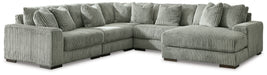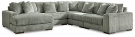 Details Includes 5 pieces: left-arm facing corner chaise, wedge, 2 armless chairs and right-arm facing corner chair, "Left-arm" and "right-arm" describe the position of the arm when you face the piece, Corner-blocked frame, Reversible cushions, High-resiliency foam cushions wrapped in poly fiber, Throw pillows included, Pillows with feather-fiber blend, Polyester upholstery, Exposed feet with faux wood finish, Platform foundation system resists sagging 3x better than spring system after 20,000 testing cycles by providing more even support, Smooth platform foundation maintains tight, wrinkle-free look without dips or sags that can occur over time with sinuous spring foundations