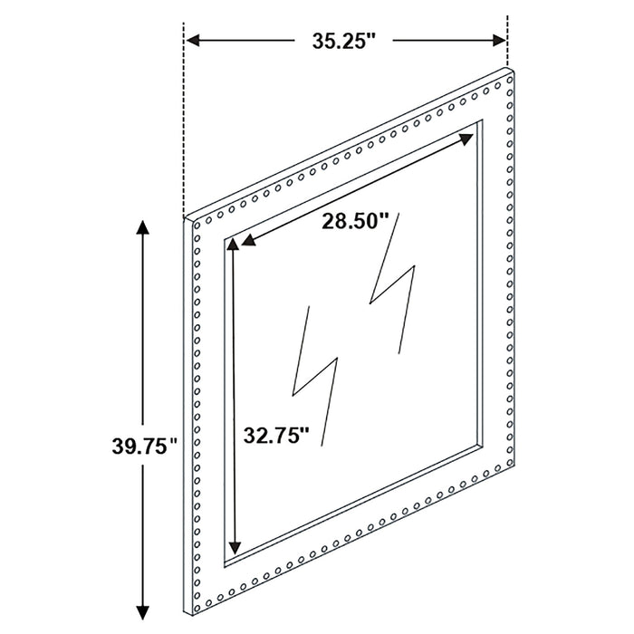 This gorgeous mirror is a masterpiece made for royalty, ready to perk up your sleeping space. Its admirable frame is upholstered entirely in gorgeous velvet fabric. Nail head trim surrounds the frame for a sleek and exquisite upgrade. Place this mirror on top of a matching dresser and watch how your sleeping space becomes transformed. Designed for glam-style bedrooms.