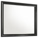 Glittering trim and a black finish create a sense of sophistication for a four-piece modern bedroom set. Designed to make a statement, the set focuses on a bed that boasts a crisp, clean-lined silhouette that pairs a rectangular headboard with padded black upholstery. Glittering diamond-like trim adorns the head and footboards of the bed and makes a statement on both the nightstand and dresser. Drawers are accentuated with jewelry inspired bar pulls that add to a gleaming presentation. Bracket feet complete the look of each piece in this set, offering a touch of timeless character and subtle movement.
