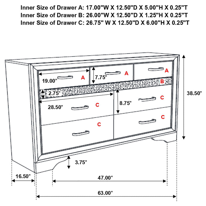 • Dresser includes seven drawers with framed mirror to match