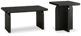 Details Includes coffee table and end table, Made with hardwood veneer and MDF substrate, Black finish; embossed wood grain texture, Assembly required