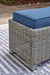 Indulge in backyard bliss. This outdoor bench has a straightforward sense of style with its light gray resin wicker and wood-look finish. Blue high-performance Nuvella+™ fabric covers the cushioned top, weathering the elements and keeping your aesthetic casually cool.