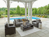 Luxurious comfort, meet outdoor living. This furniture set brings superior seating areas alfresco, taking cues from contemporary interiors with its versatile neutral hues and ample cushioning. Soak up the sun on summer days or cozy up with cocoa on winter nights—this set’s durable design allows you to enjoy chic seating through all seasons.