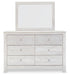 | Details | Dresser with mirror, Made of engineered wood (MDF/particleboard) and decorative laminate, Whitewash replicated worn through paint with authentic touch, Hardware features a worn-through painted effect, 6 smooth-gliding drawers with faux laminate lining, Mirror attaches to back of dresser, Assembly required | |