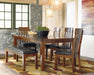 This large upholstered dining room bench beautifully captures the essence of rustic refinement. Its plushly upholstered faux leather makes pulling up a seat so much more enticing. Makes for easy cleanup, too.