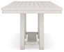 This counter height dining table is sure to impress come mealtime. With its antiqued white finish and a planked effect tabletop that extends for additional seating, farmhouse-style dining has never been so fashionable. All that’s missing is you and your family.