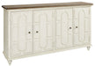 Whether your style is cottage chic, boho inspired or uniquely eclectic, this accent cabinet is sure to look right at home. Standout elements include raised panel door fronts that are a work of art. Wonderfully timeworn in antique white, this 4-door cabinet is topped with a warm brown finish for two-tone interest. Two adjustable shelves add to its practicality.