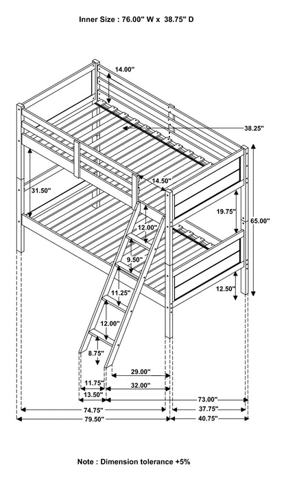 • The top bunk includes matching slatted guardrails and a built-in ladder for easy access