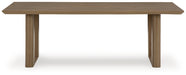 Elevate the appeal of easy-breezy living with this outdoor dining table. Made to look like wood yet durable enough to weather the elements, this rectangular table is sure to serve you and your besties well, year after year. Its cool character is made for warm memories; an umbrella hole offers the option of sweet shade.