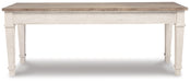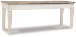 | Details | Made of wood, acacia veneer and engineered wood, Distressed grayish white finish, Seat opens to reveal hidden storage, Assembly required | |