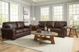 Details 5210738: Corner-blocked frame, Attached back and loose seat cushions, High-quality foam cushions wrapped in poly fiber, 100% top grain leather covers inside areas such as the back, seat and arm cushions; skillfully matched faux leather covers the remaining areas, Due to its natural origin, real leather can show individual characteristics such as healed scars, growth marks, grain variation and shade variation, Natural variations make each hide unique and do not detract from the wearing qualities of leather, Pigmented corrected grain leather with slight embossing and a light contrast spray effect to add more depth, Exposed feet with faux wood finish, Platform foundation system resists sagging 3x better than spring system after 20,000 testing cycles by providing more even support, Smooth platform foundation maintains tight, wrinkle-free look without dips or sags that can occur over time with sinuous spring foundations, 5210735: Corner-blocked frame, Attached back and loose seat cushions, High-quality foam cushions wrapped in poly fiber, 100% top grain leather covers inside areas such as the back, seat and arm cushions; skillfully matched faux leather covers the remaining areas, Due to its natural origin, real leather can show individual characteristics such as healed scars, growth marks, grain variation and shade variation, Natural variations make each hide unique and do not detract from the wearing qualities of leather, Pigmented corrected grain leather with slight embossing and a light contrast spray effect to add more depth, Exposed feet with faux wood finish, Platform foundation system resists sagging 3x better than spring system after 20,000 testing cycles by providing more even support, Smooth platform foundation maintains tight, wrinkle-free look without dips or sags that can occur over time with sinuous spring foundations,