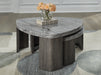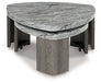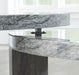 Details Made with decorative laminates and MDF substrate, Tabletops with gray faux marble, Legs with replicated weathered gray wood grain, Integrated pivoting lower table, Assembly required