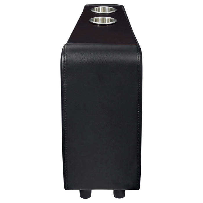 Transform your living room into a cinematic retreat with this modern home theater seating collection. Upholstered in smooth black leatherette, each push back recliner offers plush headrests, supportive armrests, and pocket coil seating with a cool gel memory foam topper for lasting comfort. Removable stainless steel cupholders built into the wedge consoles provide convenience and easy maintenance. Sleek stitching details and a tailored silhouette add contemporary refinement, while sturdy construction ensures durability for years of entertainment.