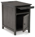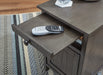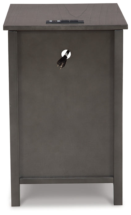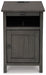 Add big character to a small space with this chairside end table. With its compact size and strong silhouette, it can go anywhere and blend easily into the decor. Less is so much more with the Shaker-inspired design and black wood tone finish. Loaded with form and function, this end table displays accent pieces and stores essentials securely while keeping devices powered up.