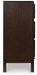 A rich, metropolitan finish. Unbeatable function. With this dresser, it’s a breeze to create a casual contemporary hideaway full of style and convenience. It combines thoughtful craftsmanship and handy storage, with smooth-gliding drawers to help keep clothes and linens organized. Metal bar pulls complete the look with added flair.