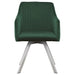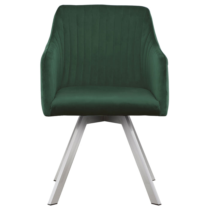 • Chairs with bucket style seats, vertical channel tufting, and soft green velvet upholstery