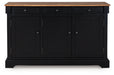 | Details | Made with hardwood solids, mango wood veneer and MDF substrate, Top with butcher block veneer pattern in deep brown wood tone finish, Base with warm satin black finish, Hardware with dark bronze-tone finish, 3 smooth-gliding drawers with felt lining and heavy-duty ball-bearing side glides, 3 cabinets, each with 2 adjustable shelves | |
