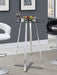 Whether you're sitting down to an intimate dinner or enjoying a cocktail with friends, this contemporary bar table helps you entertain in style. Its compact size allows for a variety of placement options, making it ideal for a small kitchen or dining area. An attractive yet simple design blends seamlessly with any home decor. Smooth, clean, tapered lines and a gleaming chrome finish give it a pleasingly modern appearance. A round, clear, tempered glass top completes its elegant look