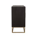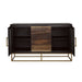 • Gold metal base and hardware add a sleek, modern contrast to the wood tones
