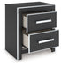 Details Made with engineered wood (MDF/particleboard/plywood) and decorative laminate for the right balance of affordability and durability, Matte black finish with subtle replicated wood grain, Decorative laminate replicates natural or man-made material surfaces with consistent color, pattern and texture, Chrome-tone accents, Large-scale chrome-tone handles with faceted details, 2 smooth-gliding drawers, Drawer interiors are lined with a faux linen laminate for a clean, finished look, Slim profile USB-A and USB-C charging ports, Power cord included; UL Listed, Minor assembly required